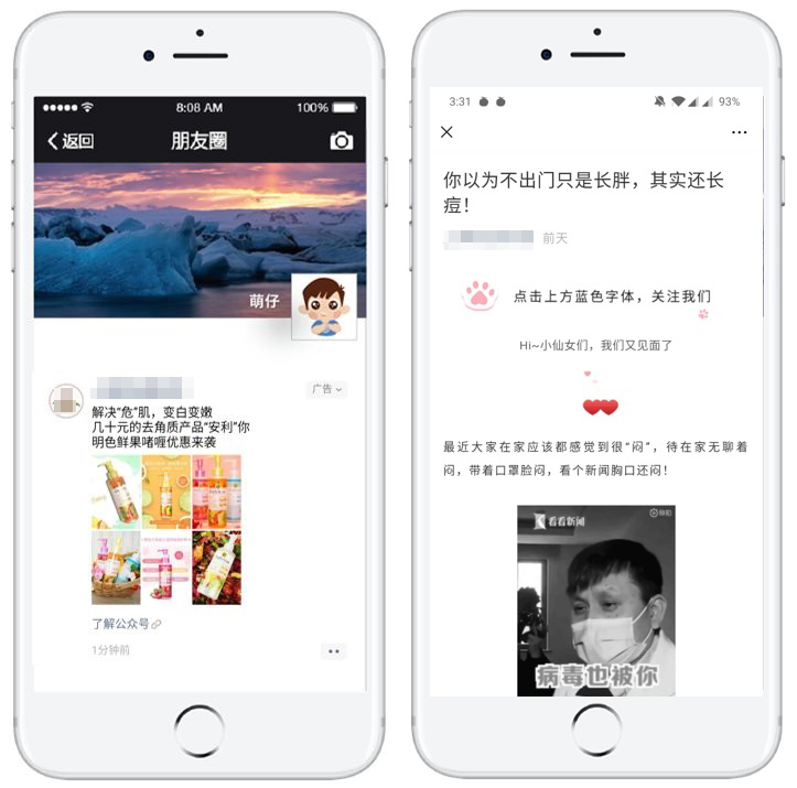 桃谷順天館公眾號文章推送與朋友圈廣告投放緊密聯(lián)動,客戶在朋友圈收到廣告后,可選擇點擊外層進入小程序落地頁,也可以點擊在廣告外層左下角位置了解公眾號詳情。
