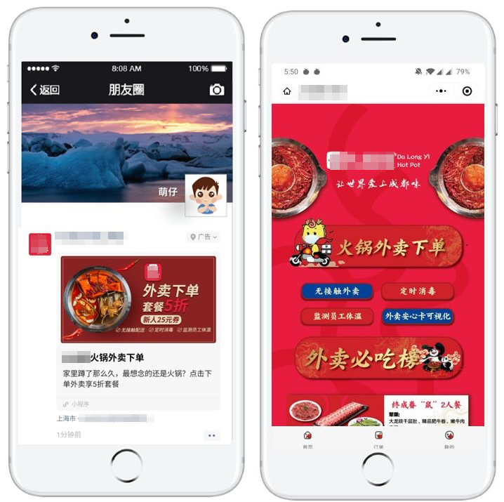 受疫情影響嚴(yán)重,無法正常營業(yè),是餐飲行業(yè)商戶面臨的最嚴(yán)峻考驗。為應(yīng)對疫情,餐飲商戶想盡辦法將門店搬到線上,借助微盟“朋友圈廣告+小程序”一體化解決方案,開通線上外賣服務(wù),降低損失,以求扭虧為盈。