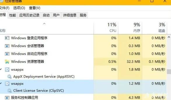 我們在wsappx運(yùn)行時,打開任務(wù)管理器,將其展開,通常會發(fā)現(xiàn)里面顯示的是“Client License Service”或“AppX Deployment Service ”。不過單單看這個名字,我們是搞不清楚它是干什么的。